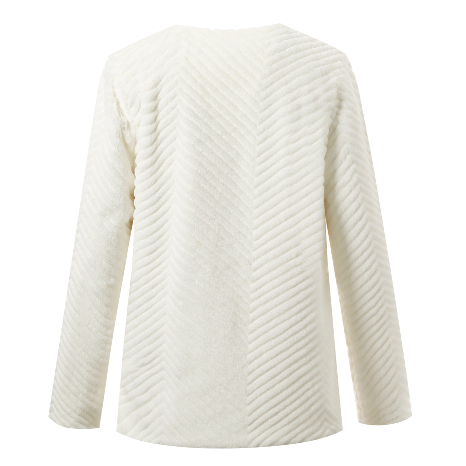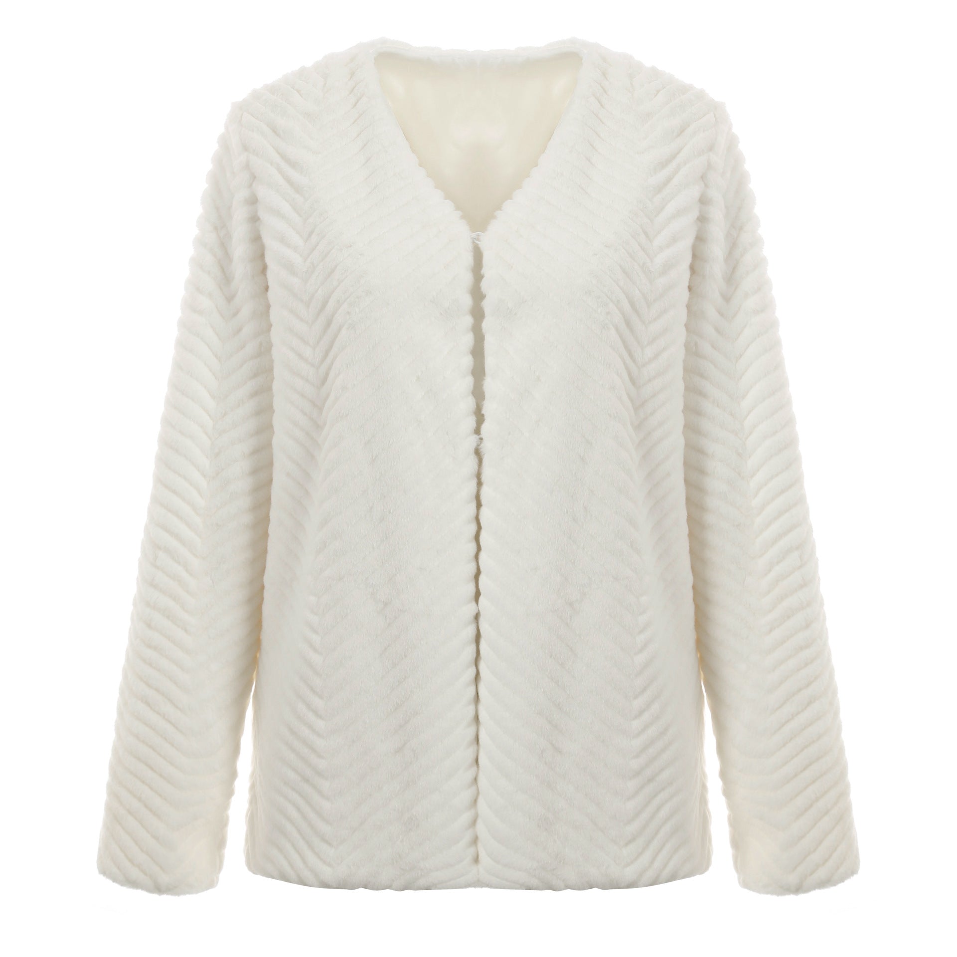 Veste femme en fausse fourrure douce avec col V élégant. Coupe confortable, style chic et moderne, parfaite pour l’automne et l’hiver.