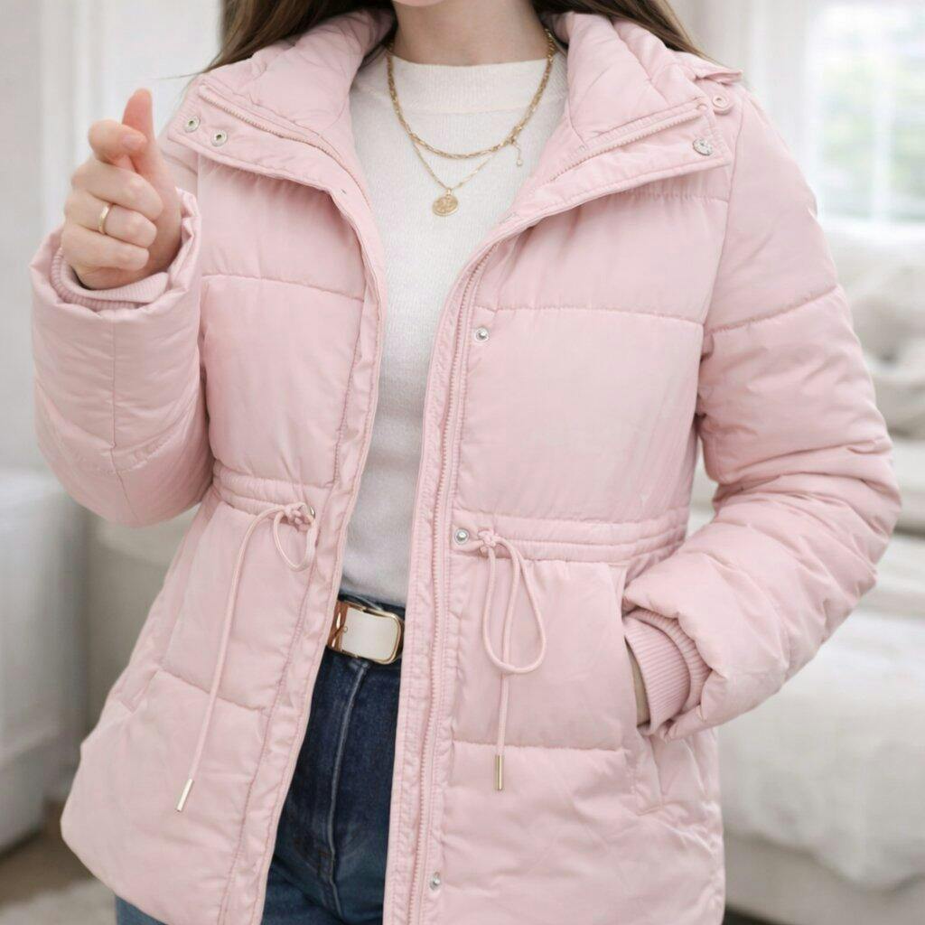 Cette doudoune claire apporte une touche de fraîcheur et d’élégance à vos tenues d’hiver.
